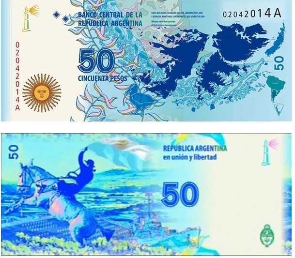 El martes 2 de abril, en el marco del nuevo aniversario de la Guerra de Malvinas, la presidente, Cristina Fernández, presentó el nuevo billete de $ 50, que lleva la imágen de las islas y del Gaucho Rivero