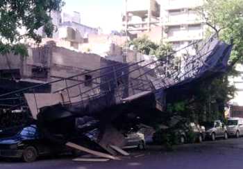 Debido al intenso viento registrado el fin de semana, el domingo se desplomó un andamio sobre tres automóviles que estaban estacionados en la calle Austria, esquina Beruti
