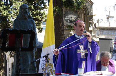 Ayer se conmemoró el día de los fieles difuntos con una misa en el cementerio de La Recoleta, la ceremonia fue oficiada por Monseñor Enrique Eguía Seguí, obispo auxiliar de Buenos Aires