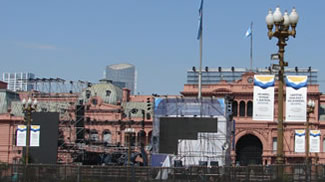 El viernes 10 estaba previsto un importante acto, en Plaza de Mayo, para celebrar el Día de la Democracia y los Derechos Humanos, debido al mal tiempo, debió realizarse ayer
