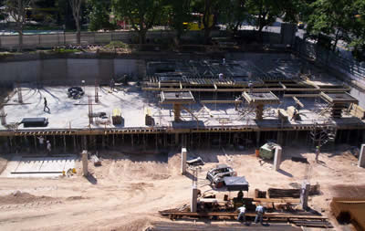 Estuvimos mirando el avance de las obras de construcción de la playa de estacionamiento subterránea en la plaza ubicada en Las Heras y Pueyrredón, aquí se lo mostramos