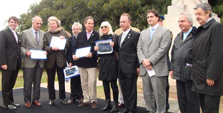 En un pequeño escenario instalado delante del monumento a los caídos el 6 de septiembre de 1930, se encontraban Raúl Santana, la Baronesa Dudu Von Thielmann; el arquitecto, Antonio Antonini; la artista plástica, Marta Minujín y el fotógrafo, Aldo Sessa; el director del CGPC 2, Licenciado Facundo Carrillo y el Comisario Inspector, Ricardo Pedace. Asistieron además, alumnos del Colegio del Pilar y también estuvo presente el padre Rómulo Puigari, párroco de la Basílica del Pilar.