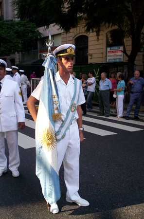 En la Plaza, aguardaba en un palco: el jefe del Estado Mayor de la Armada, almirante Jorge Godoy, y el secretario de Cultura porteño, Hernán Lombardi, que encabezaron el acto, junto con otras personalidades.