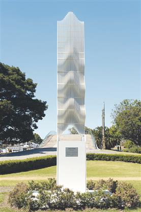 El monumento tiene forma de flecha blanca y ondulada y según su creador, deja librada a la imaginación del observador la interpretación que quiera darle. Es la primera obra del artista argentino, emplazada en un espacio público porteño. Cuenta con una composición lumínica diseñada por Eli Sirlin, quien explicó: "Elegimos una secuencia de cinco minutos durante los cuales 16 luces blancas suben y bajan su intensidad creando una sensación de movimiento que se integra al del transeúnte que la ve al pasar". Esto genera una sensación de movimiento que obliga a elevar los ojos al cielo.