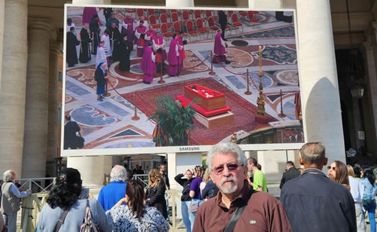Como es de público conocimiento, el lunes de la semana pasada falleció Jorge Mario Bergoglio. Estuvimos en Roma el día del deceso y pudimos ir a Plaza San Pedro para presenciar en vivo, por pantalla gigante, junto a gran cantidad de fieles el velatorio del Santo Padre.
